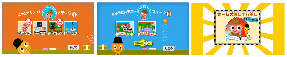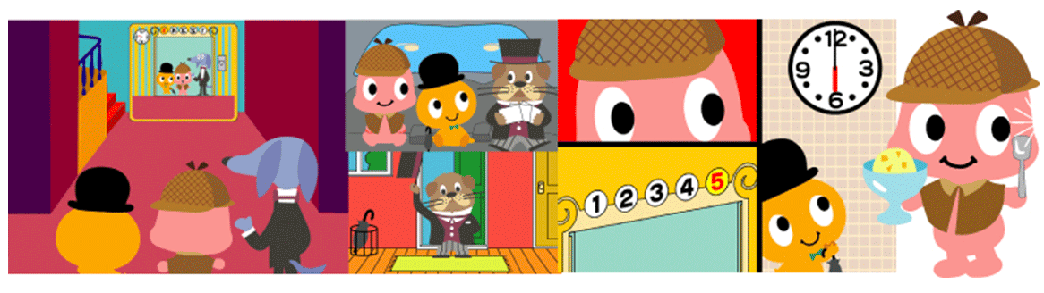 「アイウエ・オームズ」は、名探偵オームズが難しい事件を解決する推理アニメと、オームズ探偵団の入団テストである5種類のゲームとで構成されています。推理アニメで知的活動を刺激し、さらにゲームを通して、必要な観察力や論理性を養います。親子で謎解きに挑戦すれば、楽しい会話が広がります。
